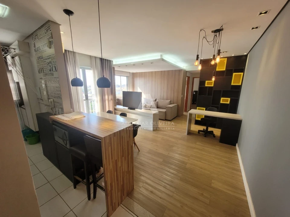 Este apartamento mobiliado por completo possui 2 dormitórios, sala ampliada com escritório em conceito aberto, 2 banheiros, cozinha, área de serviço e 1 vaga de garagem coberta.